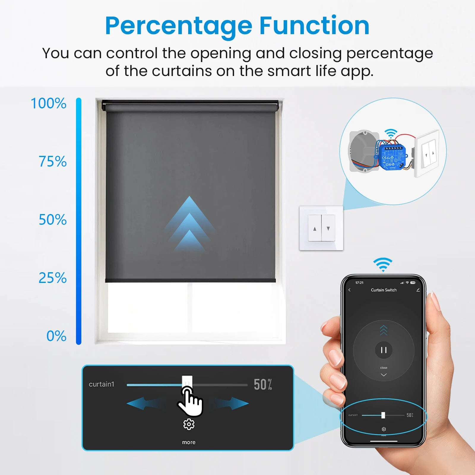 LoraTap Tuya Smart Roller Shutter Curtain Blinds Switch Tubular Motor Percentage Remote Voice Control by Google Home Alexa